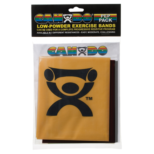 Challenging (Black Silver Gold) * The Low-Powder Cando© exercise band PEPTM pack can be used for a complete progressive resistance exercise program * Each PEP pack comes with 1 of each three different 4-foot bands and an illustrated instruction/exercise chart * Bands are polybagged for additional protection *