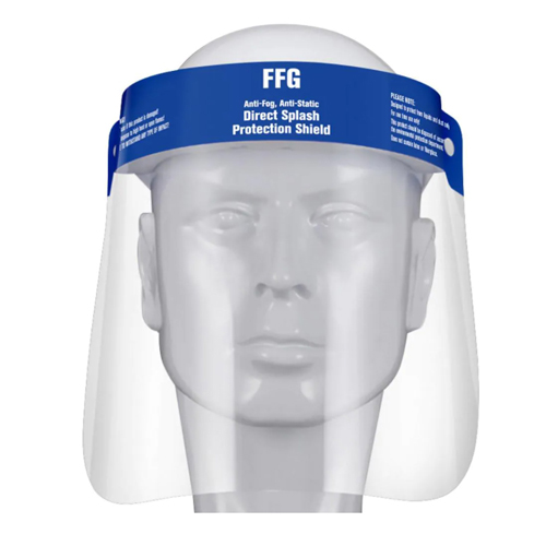 FFG’s Anti-Fog Anti-Static Direct Splash Protection Shield is made from high grade PET material that offers a wide range of vision and prevent distortion * This ultra light face shield is flexible with a soft foam headband * It also works with personal eye wear * One size fits all * Non impact rated *