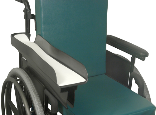 Black molded plastic with foam padding and elbow strap * Reversible can be used for right or left arm * Open hand design * HCPCS codes: E2209+E1028 * Can be used on any standard wheelchairs with desk arms or full arms