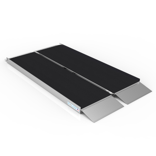 Advantage Series * 5′ x 29.5 * Curbs 1-2 Steps and some Minivans * This ultra-strong single-fold ramp provides the safety and strength required while remaining light and portable The ramp can be separated making it even easier to use carry and store Ergonomically designed flexible non-breakable handles offer convenient carrying and a comfortable grip * Ramp features high-quality skid-resistant tape with yellow safety strips * Self-adjusting bottom transition plate for easy conversion from ramp to ground * Unfolds to a 29.5 wide platform * Manufactured of welded aircraft-grade aluminum * Features an 800 pound weight capacity *