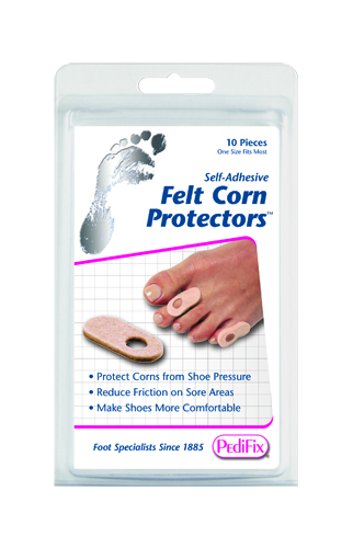 * The PodiatristsÊs Choice© to protect corns from shoe pressure and friction * Self-adhesive backings keep these durable Felt pads securely in place * Scissor-trimmable for a custom fit * One size fits most
