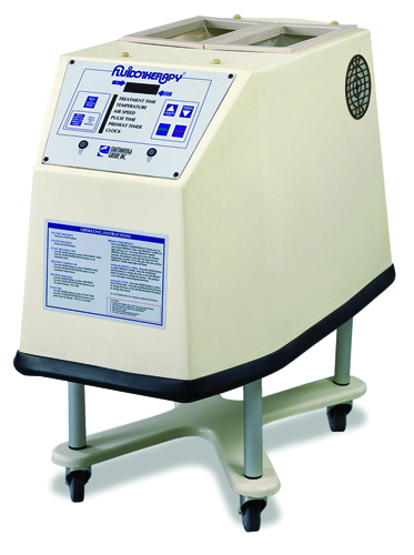 34 x 18.5 x 33 * Double extremity unit for treating up to two hands or two feet independently or simultaneously * Unit is removable from stand for easier completion of lower extremity applications * Double extremity unit * Standard capacity; holds 40 lbs (18.1kgs) of CELLEX© media * Microprocessor-based controller * Electronic temperature controls * Regulated/Adjustable air speeds * Pulsed or continuous operation modes * Electronic treatment timer * Wake-up pre-heat timer *