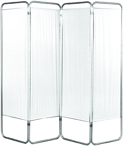 FOUR-PANEL Standard Without wheels * All white panels 6mm have been treated with an antibacterial agent * Each panel: 16 W x 68 H * 4mm white vinyl plastic * Easy-to-wipe clean * 3/4 aluminum tubing