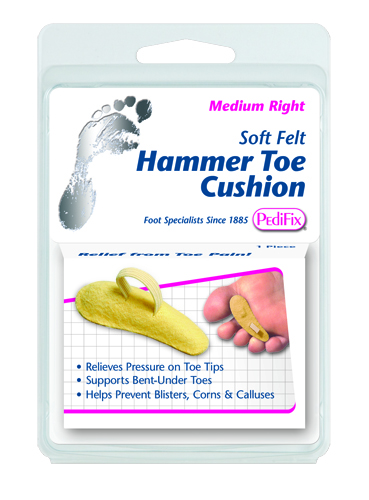 LEFT * Large * Men’s 9-11* Eases pressure on toe-tips as it comforts and supports bent-under toes * Soft curved pad also relieves related forefoot pain while helping prevent blisters corns and calluses * Adjustable toe loop holds cushion securely in place * Durable top cover * Specify right or left foot * Shipping Carton Size: 8 L x 6 W x 4 H * The PediFix FELTastic Hammer Toe Cushion supports bent-under hammer claw mallet and arthritic toes * Relieves pressure on toe tips to help prevent corns calluses and blisters * Makes walking easier * Eases forefoot pain * Adjustable toe loop holds cushion securely in place *