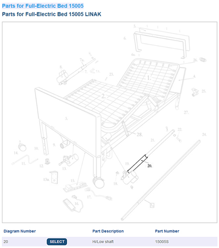 Parts for Full-Electric Bed 15005 & Parts for Full-Electric Bed 15005 LINAK: Hi/Low shaft
