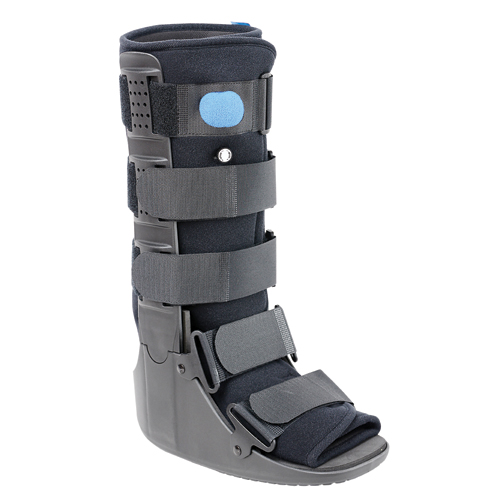 Fits: Mens Shoe Size: 12.5+ * Womens Shoe Size: 14+ Low Profile Air Walker (High Top) * Indications: Used for soft tissue injuries grade 2 and 3 sprains stable fractures and post-operative stabilization * Helps to reduce pain swelling and edema of foot and ankle * Inflatable bladder incorporated into liner for increased immobilization of the lower leg ankle and foot * Designed for the treatment of stable fractures and ankle sprains * Lightweight low rocker profile design for greater patient comfort.Cushioned heel for greater energy absorption * Wider rocker bottom design promotes a smooth energy conserving gait * Fits either left or right * Color: Black *