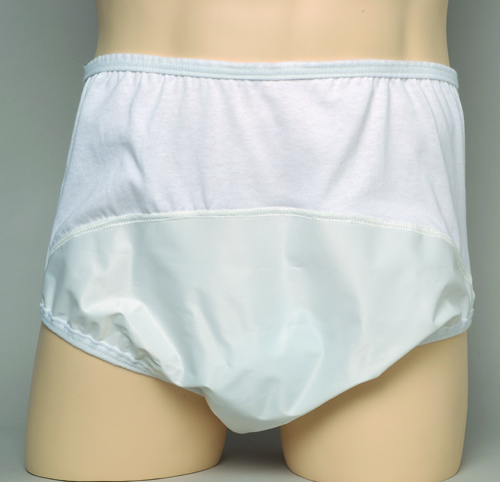 Small 22 – 28 * One brief per package * For men or women * Designed to hold absorbent pads panties or diapers * Made of soft white plastic-coated nylon * Fully launderable and totally waterproof * Lightweight yet strong – will not tear * Breathable 100% cotton panel *