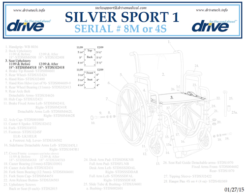 18 Seat Upholstery (from 11/09 and before) for Silver Sport 1 (8M or 4S series) Wheelchair