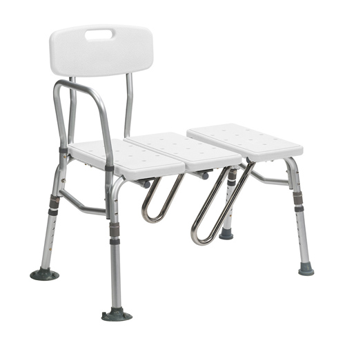 New U shape cut-out design enables the shower curtain liner to stay within the bath tub and avoiding water spillage outside onto the bathroom floor * Reversible to accommodate any bathroom * Tool-free assembly of back legs and arm * Height adjusts in « increments with unique ‘Dual Column’ extension legs * 400 lb weight capacity * A-frame construction provides stability * Durable blow-molded plastic bench and backrest * Pinch-free lever allows for push pins to be depressed without pinching fingers * Seat Width 28 * Seat Depth 16 Seat to Floor Height 16 Armrest Length 11.75 Armrest to Floor Height 27.25 Width Between Arms N/A- only one armrest Outside Legs Width 33.5 Width Clearance of Tub Wall 7 Height Adjustments 1/2 increments Warranty Limited Lifetime