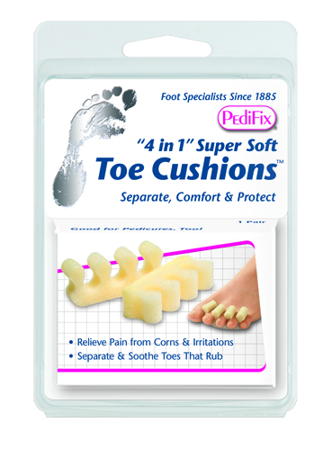* These extra-soft foam cushions divide toes to absorb pressure and friction while comforting corns and other toe irritations * Help protect toe tops & tips support bent-under ÉhammerÊ toes and more * Wear on top or under between 2 3 or all toes * Great for pedicures too * Scissor-trimmable for a custom fit * One size fits most