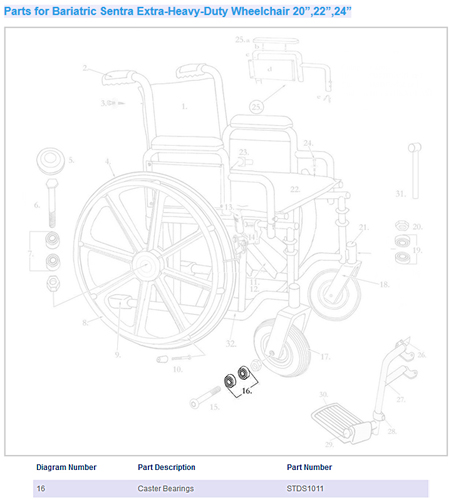 Front caster bearing for PolyFly Wheelchair/Transport chair – Inner: 8mm Outer: 22mm Thickness: 9/7mm * Sold by each